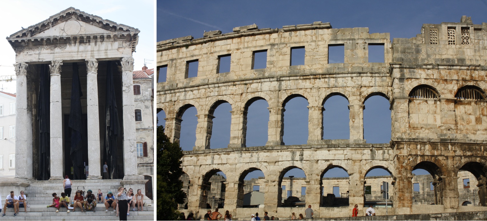 - Pula: ciudad grande y caótica, con poco encanto. Entonces, ¿por qué la destaco? Porque merece la pena hacer una parada para ver su plaza central con el Templo de Augusto y su amfiteatro. ¡Qué grandes eran los romanos!
